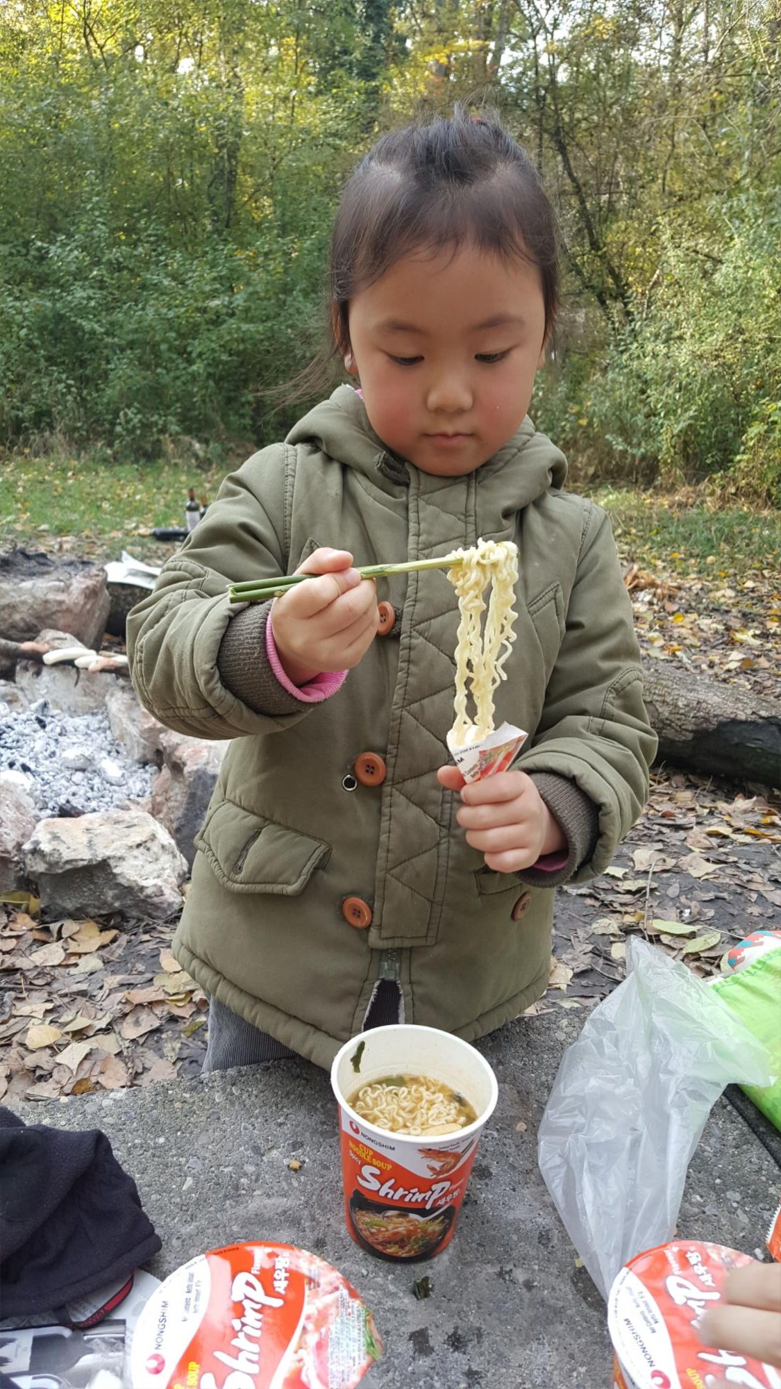 젓가락을 가져왔지만, 아이와 함께 얇은 나뭇가지를 가져와 젓가락을 만들어 보는 것도 재미있어요.