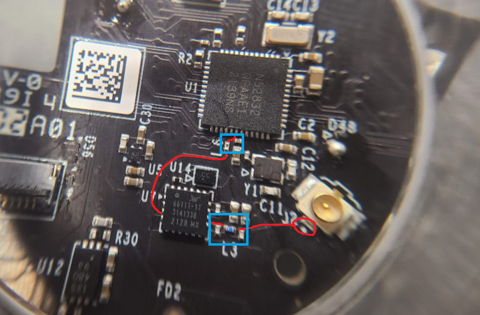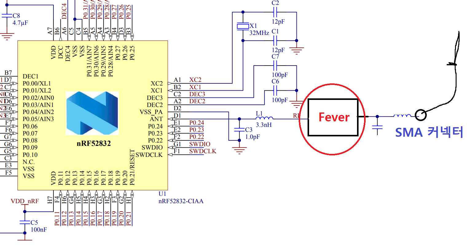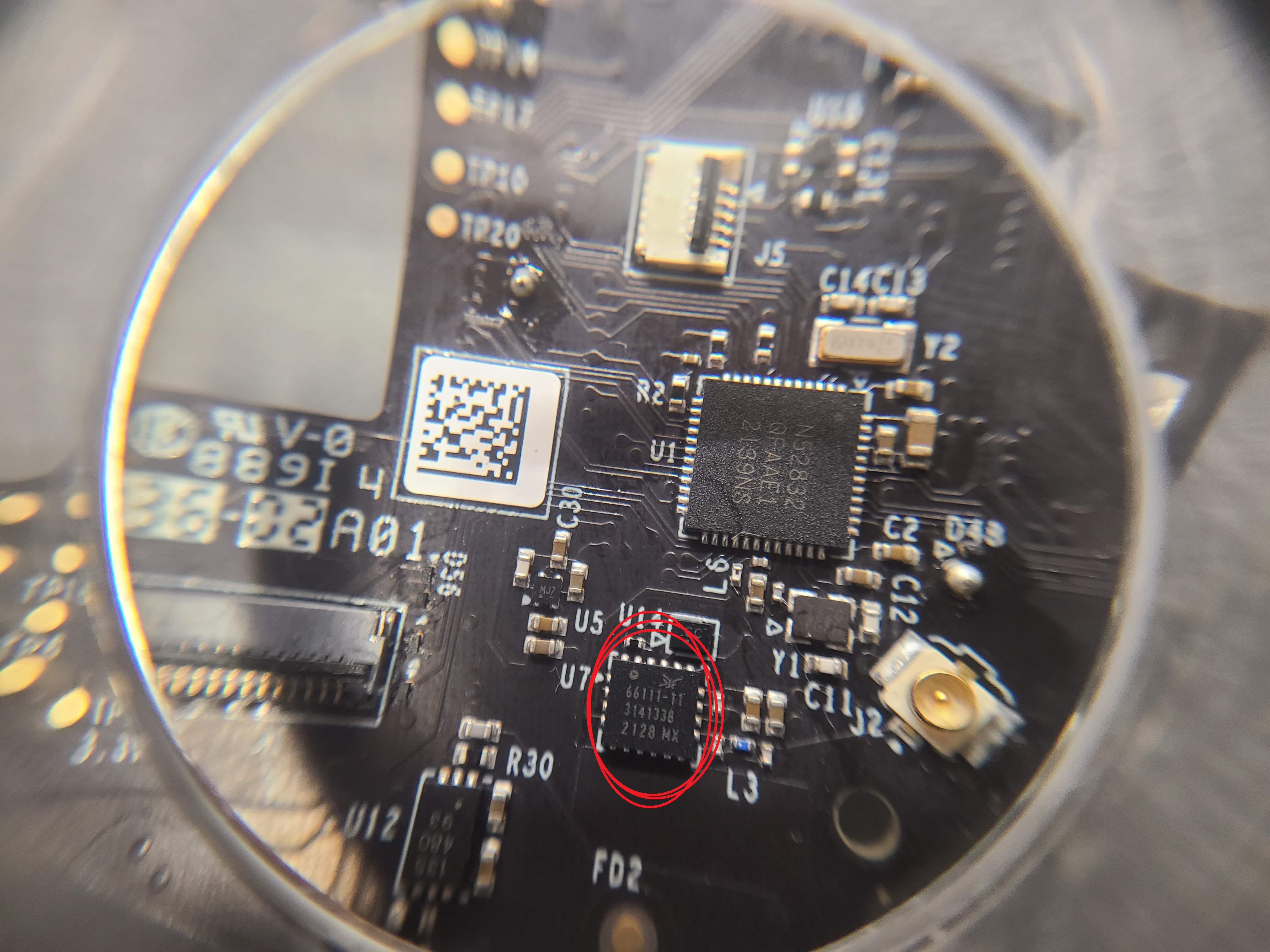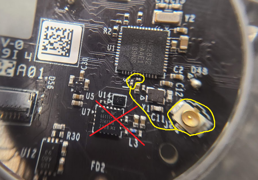 돋보기로 잘 살펴보니 노르딕의 nRF52832 라는 것이 확인되었어요.