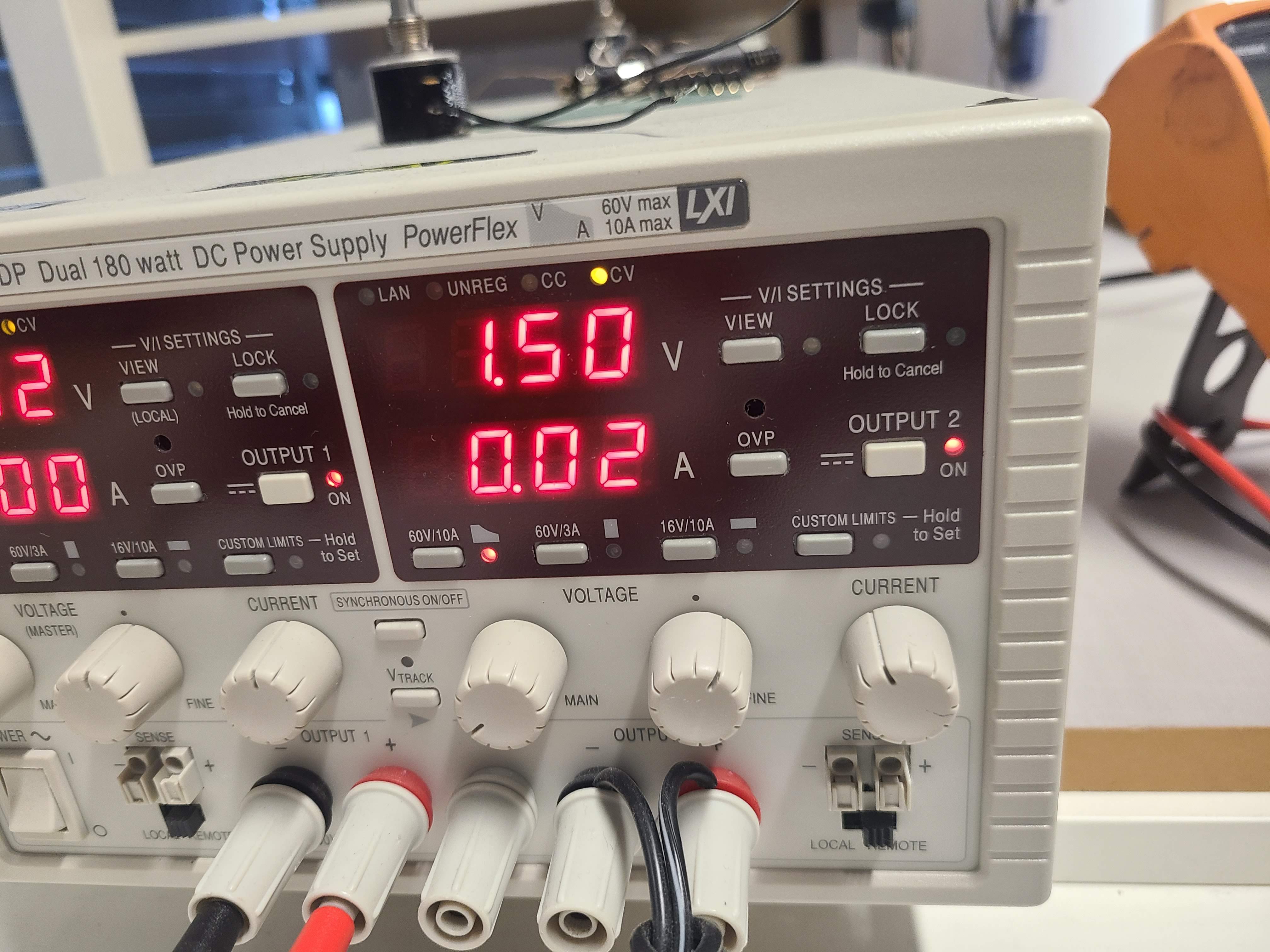 먼저 건전지 대신 1.5V 전압을 파워서플라이로 직접 연결해주고 소모전류를 측정해 봤어요.