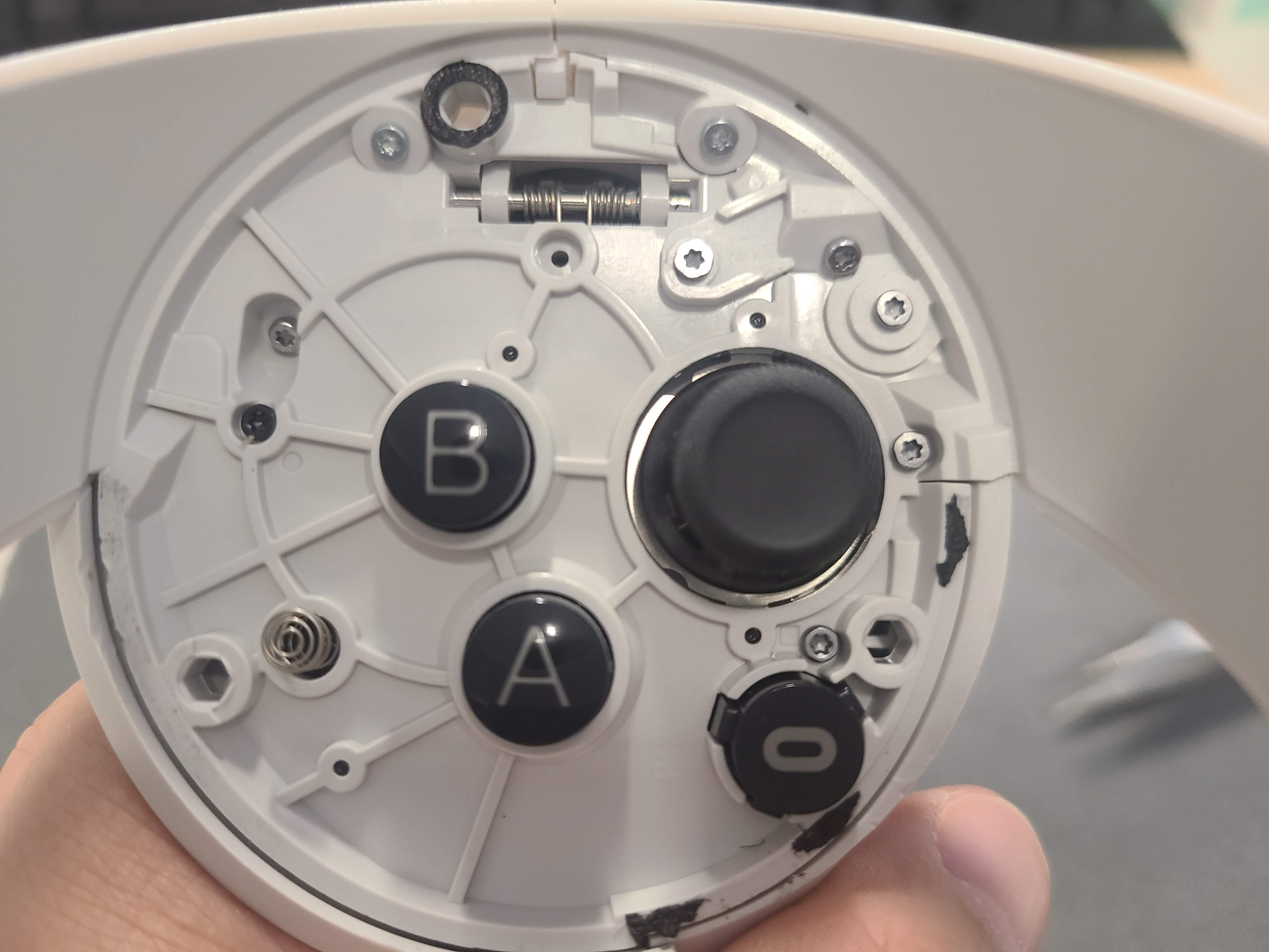 여하튼 다 벌리고 보니 아까 열리지 않던 건전지 홀더 반대쪽이 분해가 되었어요.